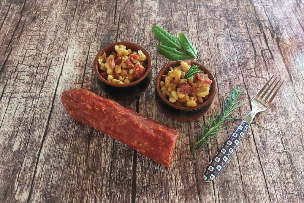 Salsiccia piccante curva con fagioli